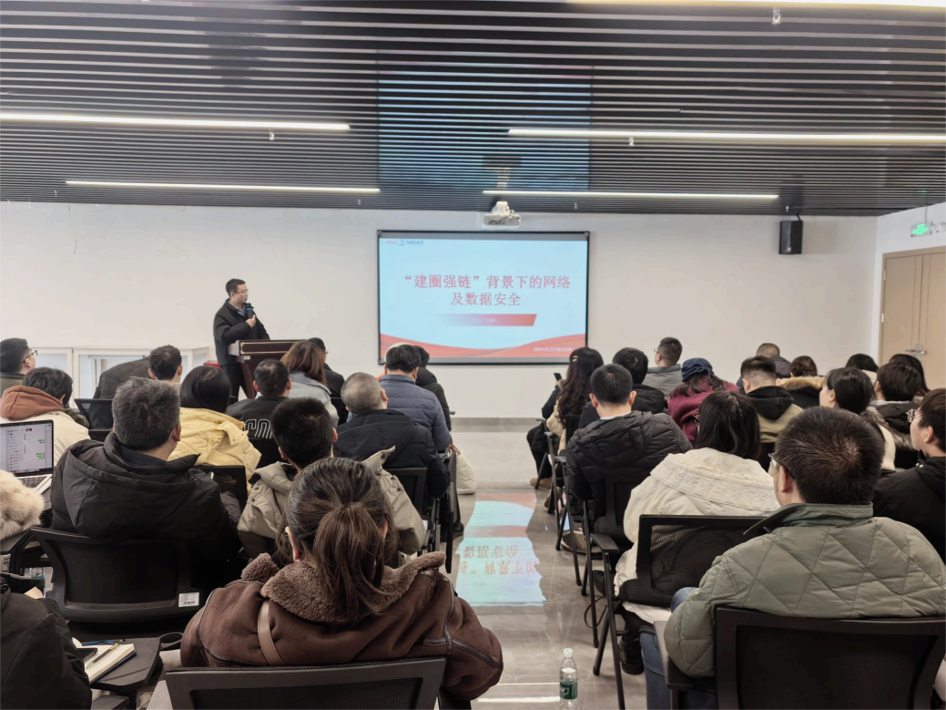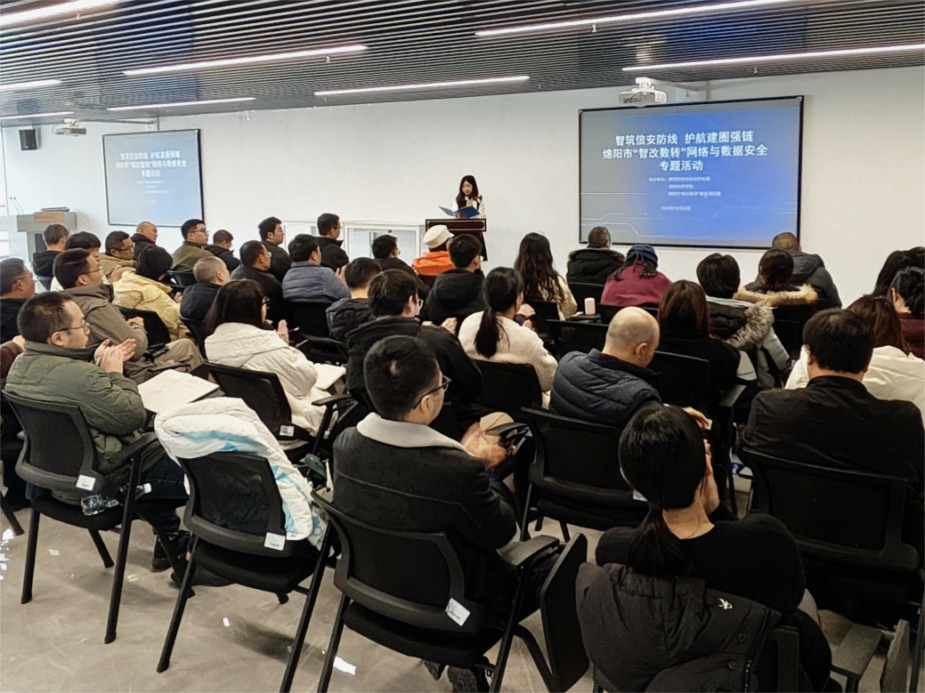 12月25日,“智筑信安防线,护航建圈强链”网络与数据安全专题活动在西南财经大学天府学院产教融合绵阳基地圆满举行。本次活动由绵阳市经济和信息化局、西南财经大学天府学院、绵阳市 “智改数转” 服务商联盟联合主办,我校产教融合中心教师谭钦颖担任主持人。活动紧扣制造业“智改数转”关键进程中的网络与数据安全核心诉求,汇聚政府相关部门领导、行业资深专家及全市重点制造业企业代表,以实战分享、深度剖析、经验交流等多元形式,为绵阳制造业高质量发展筑牢坚实的网络与数据安全屏障。